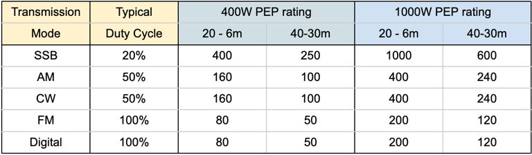 The antenna maximum power ratings are quoted as Peak Effective Power (PEP). This is a measure of the power of a radio transmitter during its peak transmission. It's the average power over a single radio frequency cycle at the crest of the modulation. This is important because it helps determine the maximum power output of a transmitter, which is crucial for ensuring regulatory compliance and minimising interference with other signals.